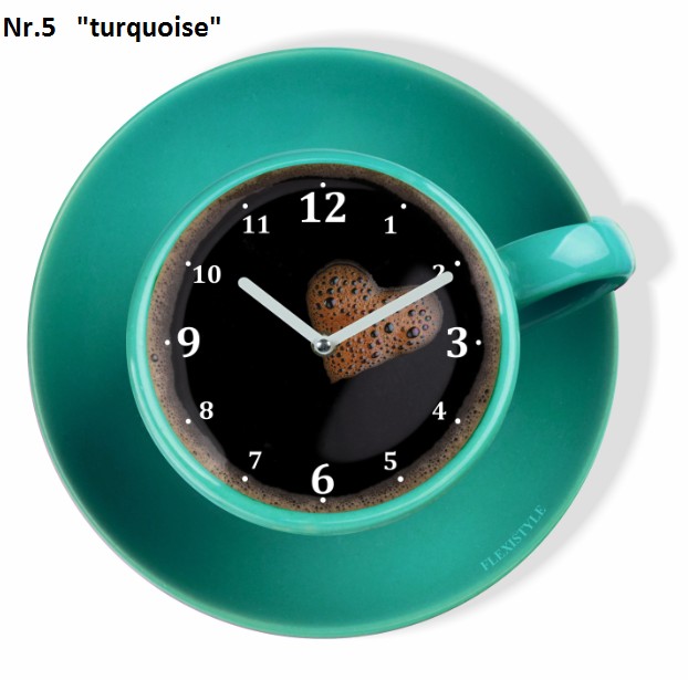 Kuchynské hodiny v tvare šálky kávy tyrkysová