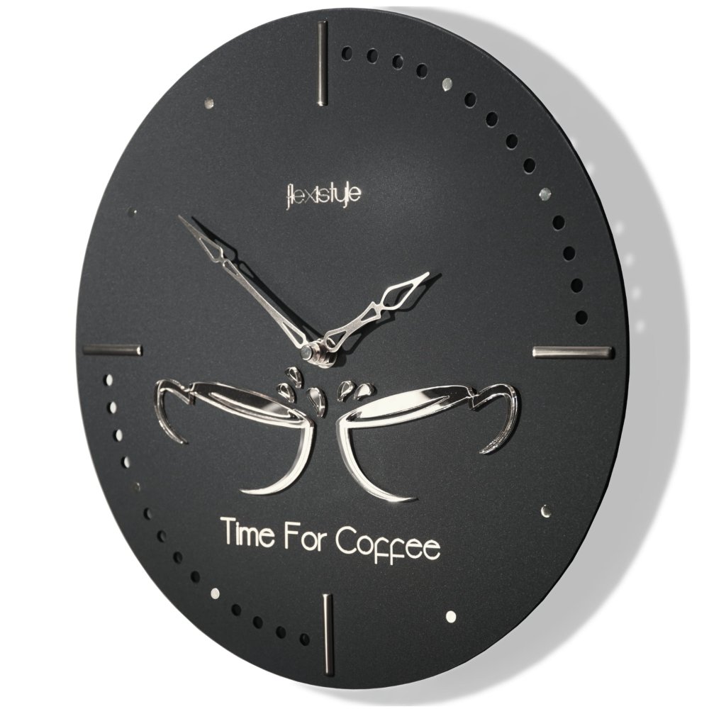 Kuchynské nástenné hodiny so striebornými šálkami – čierne