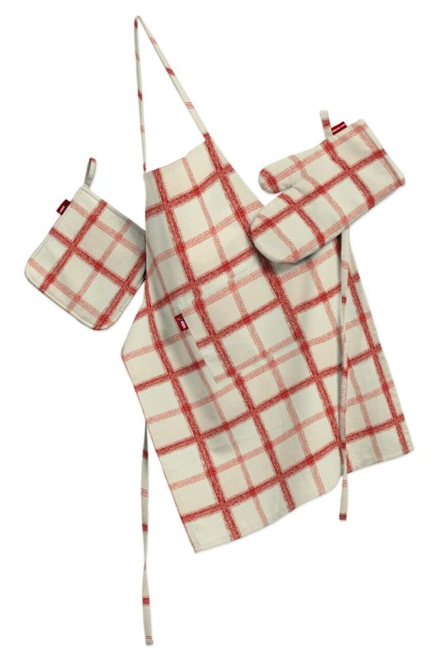 Kuchynský komplet chňapka, rukavica a zásterka, bordové káro na svetlobéžovom podklade, komplet, Avinon, 131-15