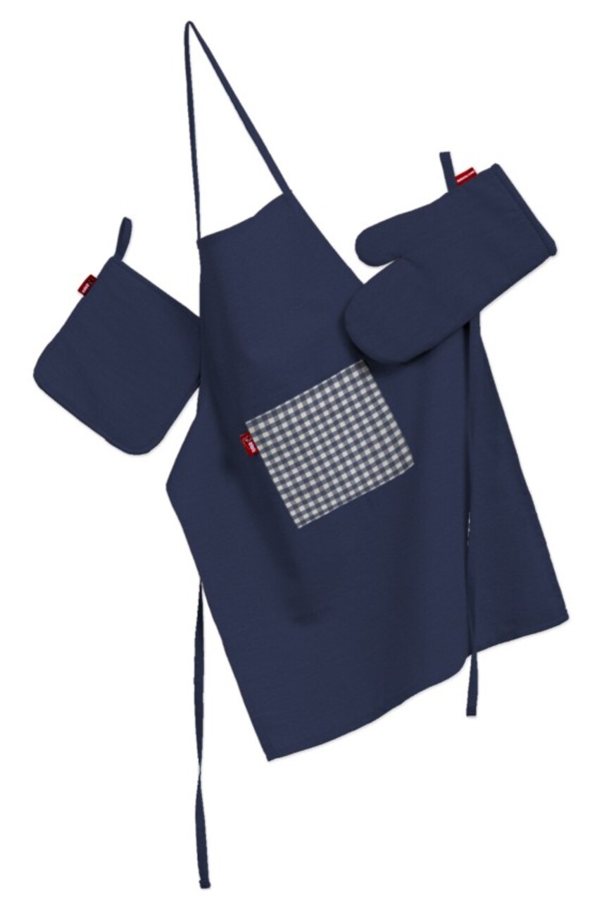 Chcete byť v kuchyni „IN“? Zo širokej ponuky kuchynských komletov si môžete vybrať podľa farieb Vášho interiéru, ročného obdobia alebo Vašej obľúbenej farby. Neviete vymyslieť darček pre Vašich známych? Určite poteší kuchynský komplet značky DEKORIA.Komplet tvorí chňapka (21 x 21 cm), rukavica (17×35 cm) a zásterka s vreckom (50×70 cm).