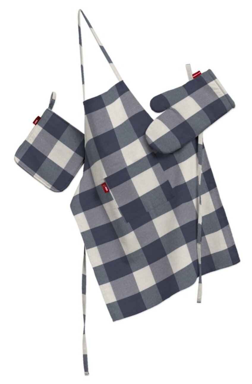 Kuchynský komplet chňapka, rukavica a zásterka, modro – biele veľké káro, komplet, Quadro, 136-03