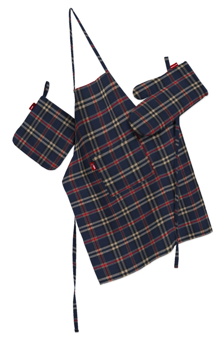 Kuchynský komplet chňapka, rukavica a zásterka, modro – červené káro, komplet, Quadro, 142-68