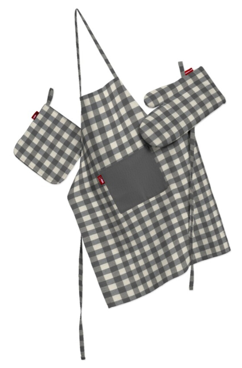 Kuchynský komplet chňapka, rukavica a zásterka, sivo-biele káro, komplet, Quadro, 136-11