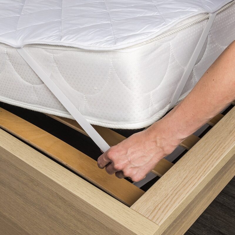 Matracový chránič je opatrený gumou v každom rohu, a vďaka tomuto ho možno ľahko prichytiť k matracu. Prešitie do štvorcov v pozdĺžnom aj priečnom smere zaisťuje stabilitu vlákna a zabraňuje jeho posunu. Vďaka svojej nasiakavosti vtiahne do seba vlhkosť a zaistí tak optimálne podmienky pre kvalitný spánok. Sušenie v bubnovej sušičke na zníženú teplotu.