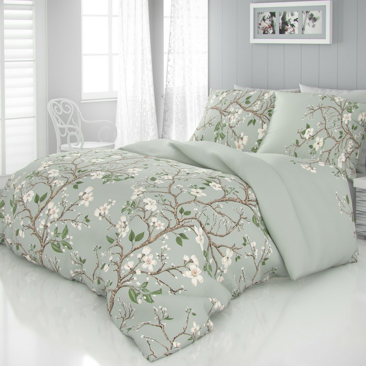 Kvalitex Saténové obliečky Jar zelená, 140 x 200 cm, 70 x 90 cm