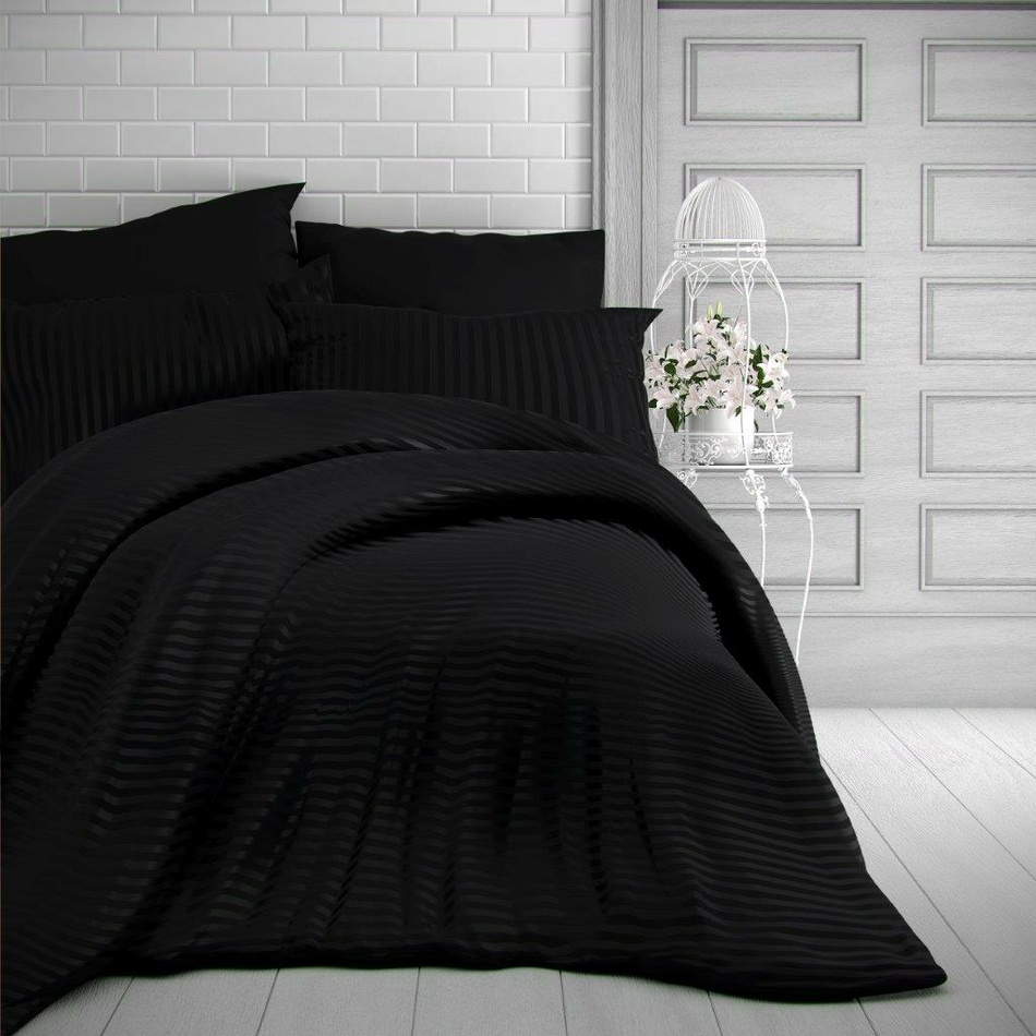 Kvalitex Saténové obliečky Stripe čierna, 140 x 200 cm, 70 x 90 cm