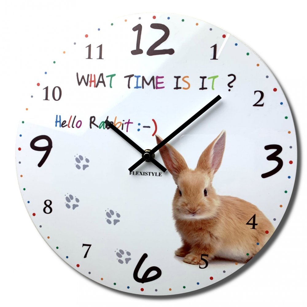 Kvalitné detské nástenné hodiny 30 cm so zajačikom