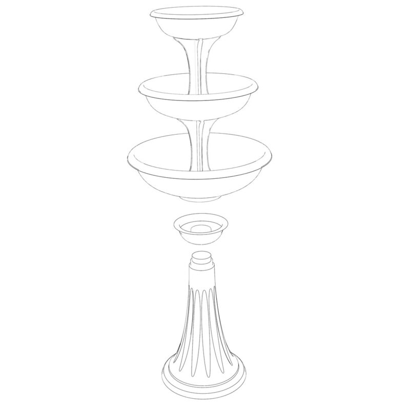 Táto kaskáda sa bude hodiť do vašej záhrady alebo na balkón či terasu. Skladá sa z troch misiek, ktoré sú spojené podporným stĺpom. Priemer misiek je 30, 40 a 50 cm.