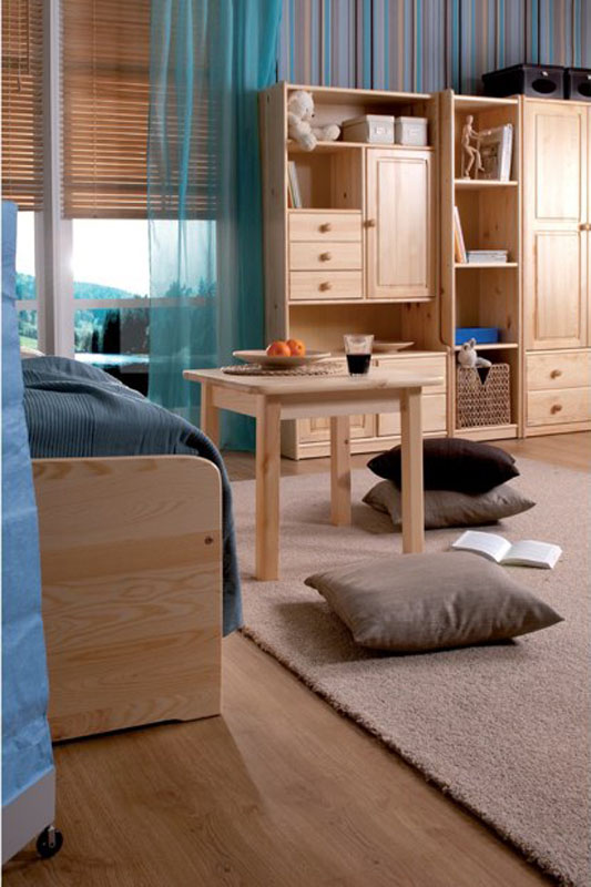 KW129 Kombinovaná komoda s policami. Je dvojdverová. Disponuje 5timi zásuvkami a tri otvorené police. Nábytok z borovicového masívu. Vhodné do študentskej izby či kancelárie napríklad na ukladanie kníh, dokumentov a pod. Farebné prevedenie: prírodná borovica (Dr-borovica). Za príplatok ponúkame možnosť namorenia na odtieň dub (Dr-dub), jelša (Dr-olcha) alebo orech (Dr-orech). Drevo je špeciálne upravené lakovaním na ochranu pred poškodením a zaručuje dlhú životnosť nábytku.