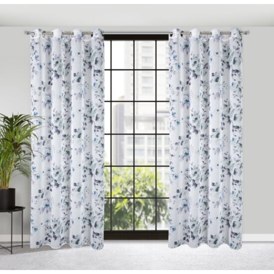 Ľahký záves s modrou kvetinovou potlačou na kruhy 135 x 250 cm
