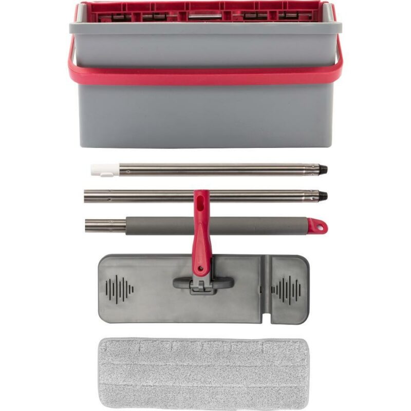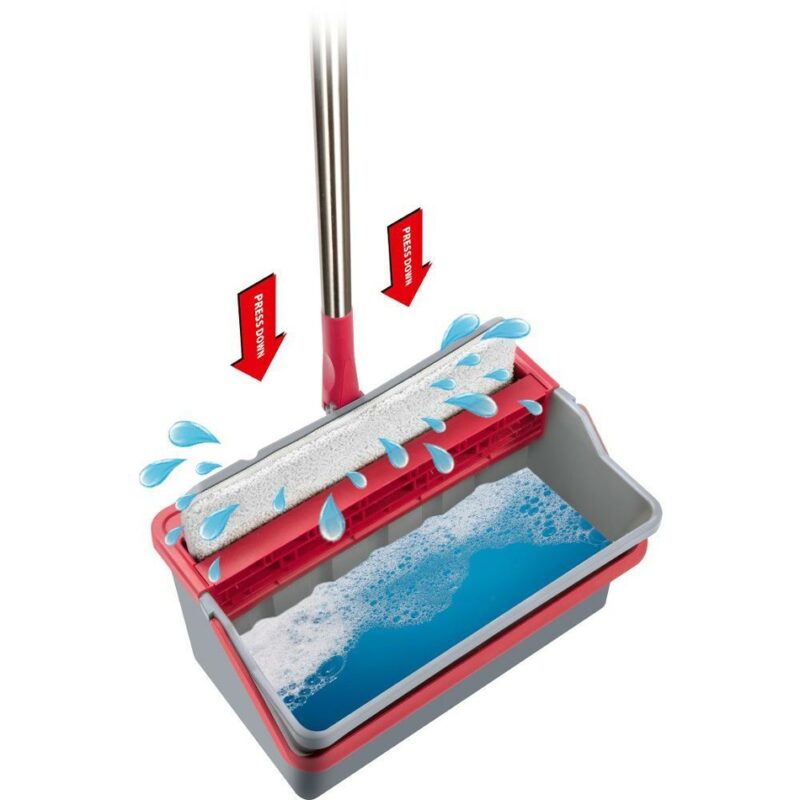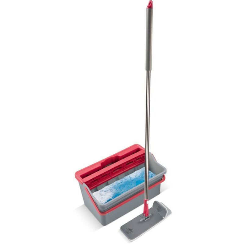 Plochý mop Lamart LT8064 Clean na vytieranie všetkých podláh v modernom dizajne. Praktické vedierko s oddelenou umývacou a sušiacou časťou. Umývacia časť so zúbkami ľahko odstráni špinu. Sušiaca časť s dvoma lopatkami pre suchšie žmýkanie. 4 kolieska pomáhajú ľahkému a bezproblémovému žmýkaniu.Spodná časť otáčacieho kĺbu umožňuje vytieranie aj v ťažko dostupných častiach miestnosti ako sú rohy alebo priestor pod nábytkom.Súčasťou sady je 3-dielna tyč z nehrzd. ocele s celkovou dĺžkou 110 cm, mäkčená rukoväť s dlhým držadlom pre pohodlné držanie, vedro s objemom 8 l s výpusťou na vodu, 1 umývací návlek.Náhradu na mop je možné kúpiť samostatne.Možno prať až na 60 °C, nepoužívajte aviváž ani sušičkuRozmery: