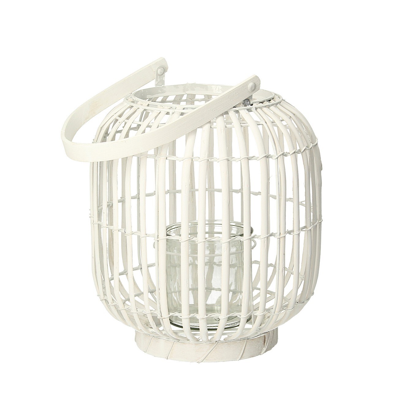 Ozdobná pletená drevená lucerna bielej farby.