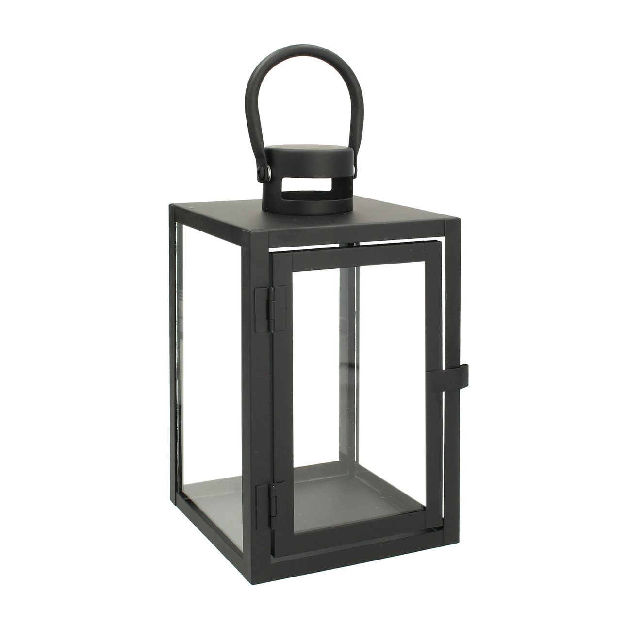 Kovový lampáš s jednoduchým dizajnom v čiernej farbe.
