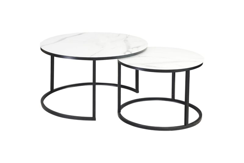 Akciová cena je za tovar skladom.Sada konferenčných stolíkov je v štýlovom a dizajnovom prevedení. Stolíky sú vhodné do moderných a nadčasových interiérov.Doska stolíkov je vyrobená z tvrdeného skla. Konštrukcia je vyrobená z kovu. Je v čiernej farbe.Sada konferenčných stolíkov sa skladá z dvoch kusov. Sú kruhového tvaru.Rozmery (š,v,h):1. stolík – 80 x 45 x 80 cm,2. stolík – 60 x 42 x 60 cm.Dodávame v demontovanom stave.