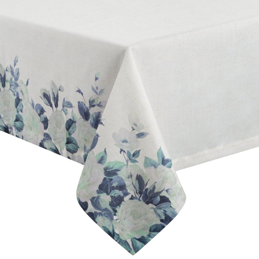 Elegantný obrus s prímesou ľanu spája prírodnú estetiku s jemným dizajnom. Svetlá tkanina s ľanovou štruktúrou je ozdobená romantickým kvetinovým vzorom ruží a lístkov, ktorý lemuje okraje obrusu a vytvára harmonický celok. Vďaka použitiu prírodných vlákien je obrus odolný, priedušný a príjemný na dotyk. Skvele sa hodí na každodenné prestieranie aj slávnostné príležitosti a vynikne najmä v interiéroch v štýle klasickom, provensálskom alebo boho.