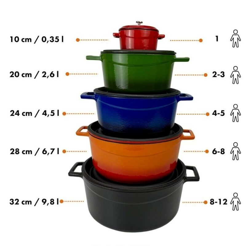 Praktický vysoko kvalitný liatinový hrniec môžete použiť na všetky typy sporákov, do rúry, na kachle aj otvorený oheň. Hrniec má nepriľnavý povrch, rovnomerne sa prehrieva a dlho udrží teplotu. Po vychladení sa môže používať aj na uchovanie chladených potravín. Pekný, moderný dizajn dovoľuje používať hrniec priamo na servírovanie.Umývanie v umývačke riadu je možné, ale neodporúča sa, pretože vplyvom čistiacich prostriedkov používaných v umývačke dochádza k zníženiu jasu farieb. Pri správnom používaní garantujeme dlhú životnosť hrnca. Vlastnosti: