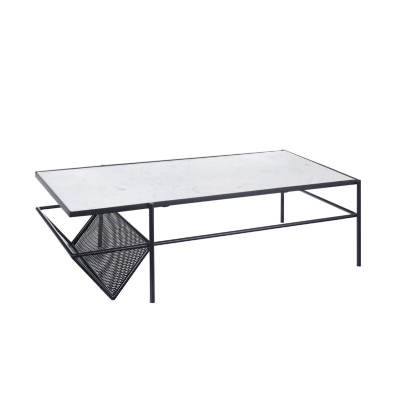 Lavica s mramorovou doskou na kovovom ráme s praktickým stojanom na noviny.Praktický stolík s krásnou mramorovou doskou. Jemný vzor prírodného kameňa a kovový čierny rám tvorí úžasný celok. Elegantná lavica sa stane dokonalým doplnkom vybavenia obývacej izby, vďaka ktorému sa po celom dni uvoľníte. Konferenčný stolík má praktický stojan na noviny, vďaka ktorému bude ukladanie obľúbených časopisov a magazínov ľahké. Rozmery: šír. 127 cm, hĺ. 64 cm, výš. 41 cm. Materiál: doska: mramor; rám: kov.