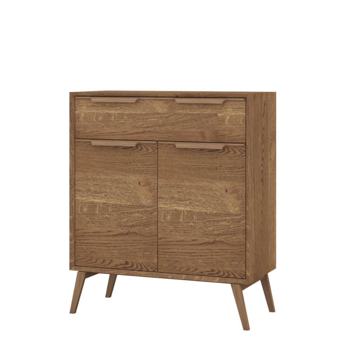 Nábytok LEA je v rustikálnom štýle a v jedinečnom prevedení. Vyniká svojou jednoduchosťou a prirodzeným vzhľadom. Predná časť nábytku je vyrobená z prírodnej dubovej dýhy v kombinácii s prírodným dubovým masívom. Korpus je z kvalitnej drevotriesky a dubovej dýhy. Rustikálne lakovanie nábytku zvýrazňuje dubovú štruktúru dreva. Úchytky sú vyrobené z dubového masívu. Nábytok má vysoké nožičky, ktoré dodávajú celému sektoru LEA vzdušný vzhľad. Pánty a výsuvy v zásuvkách sú vybavené systémom mäkkého dorazu. Komoda je dvojdverová. Vo vrchnej časti je jedna praktická zásuvka. Farebné prevedenie: dub Rustikálny.Rozmery:šírka: 105 cm,výška: 125 cm,hĺbka: 50 cm.V našej ponuke nájdete aj ďalšie prvky zo sektoru LEA