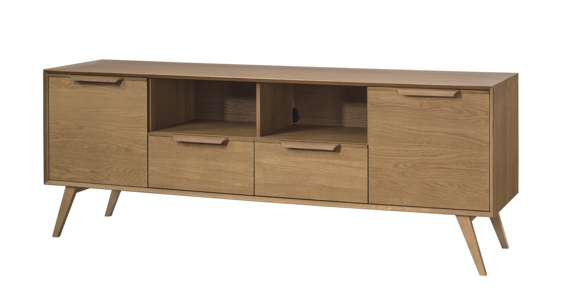 Nábytok LEA je v rustikálnom štýle a v jedinečnom prevedení. Vyniká svojou jednoduchosťou a prirodzeným vzhľadom. Predná časť nábytku je vyrobená z prírodnej dubovej dýhy v kombinácii s prírodným dubovým masívom. Korpus je z kvalitnej drevotriesky a dubovej dýhy. Rustikálne lakovanie nábytku zvýrazňuje dubovú štruktúru dreva. Úchytky sú vyrobené z dubového masívu. Nábytok má vysoké nožičky, ktoré dodávajú celému sektoru LEA vzdušný vzhľad. Pánty a výsuvy v zásuvkách sú vybavené systémom mäkkého dorazu. Komoda je kombinovaná, dvojdverová. Disponuje dvomi praktickými zásuvkami. Je vhodná pod televízor. Farebné prevedenie: dub Rustikálny.Rozmery:šírka: 206 cm,výška: 76 cm,hĺbka: 50 cm.V našej ponuke nájdete aj ďalšie prvky zo sektoru LEA
