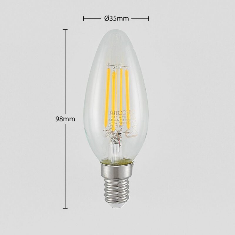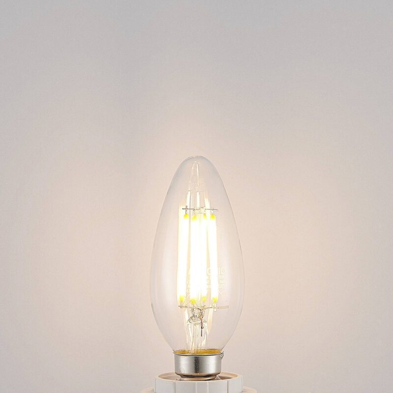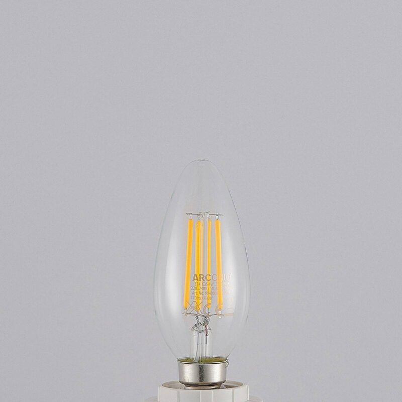 LED žiarovka E14 4W, 2 700K, stmievateľná Pomocou existujúceho vypínača svetla možno túto žiarovku nielen zapnúť a vypnúť, ale aj prepnúť na tri úrovne jasu (100 %, 55 % a 20 %). Táto dekoratívna lampa na sviečku, vyrobená z číreho skla a s technológiou žiarovky, je ideálna pre lustre a svietidlá s otvoreným dizajnom.