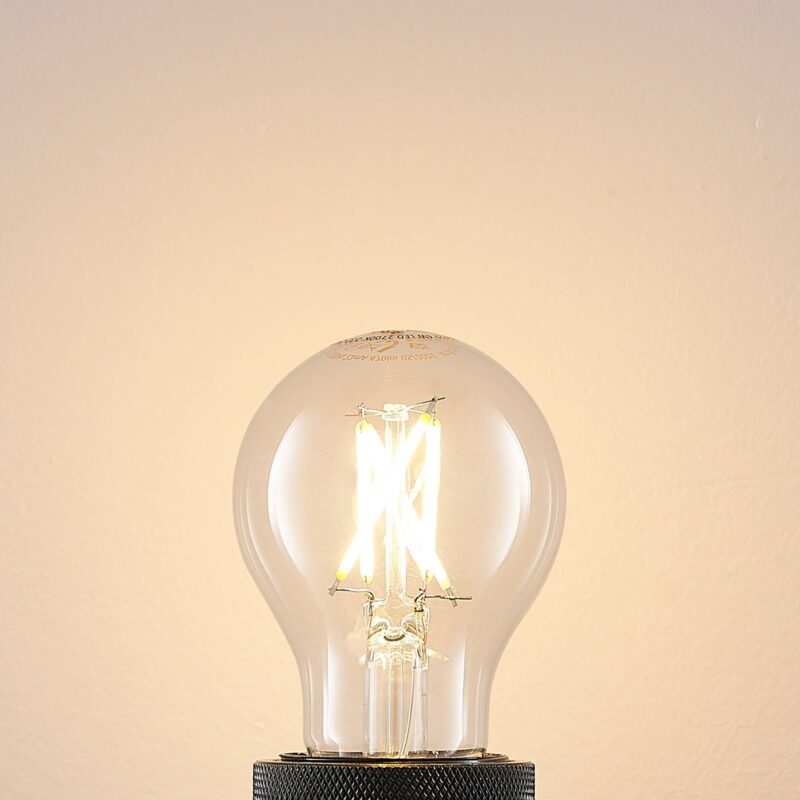 LED žiarovka E27 4 W, teplá biela (2 700 K), stmievateľná, vzhľad vlákna Táto LED žiarovka poskytuje 360° osvetlenie s teplým bielym svetlom. Má nízku spotrebu a jeho jas možno nastaviť pomocou bežného nástenného stmievača. – stmievateľné s prednými a zadnými stmievačmi fáz
