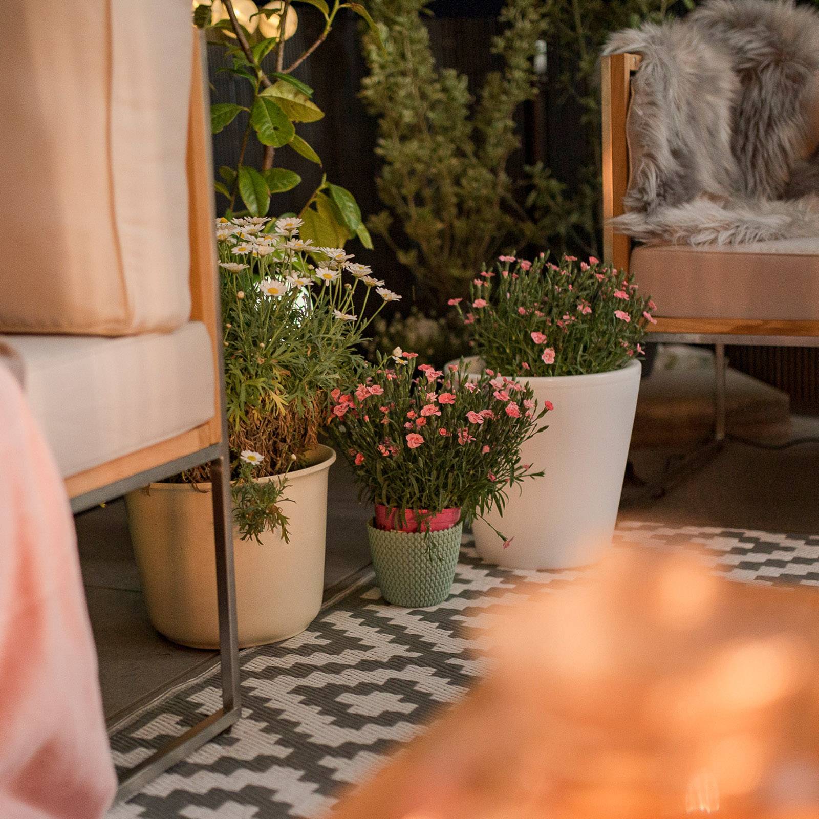 Kvetináč Assisi s LED osvetlením Absolútnou ozdobou vstupného priestoru alebo terasy je tento kvetináč Assisi osvetlený najmodernejšou technológiou LED. Kvetináč má integrovanú drenážnu rúrku, a preto sa môže vysádzať samostatne bez toho, aby spôsoboval zamokrenie. Kvetináč je osvetlený 15 LED diódami v príjemnej teplej bielej farbe svetla.