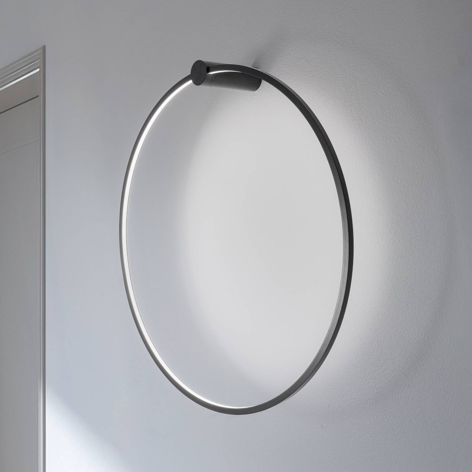 LED nástenné svetlo Saturno v úzkom kruhovom tvare, 4 000 K LED nástenné svetlo Saturno v modernom dizajne sa skladá z úzkeho hliníkového krúžku, v ktorého vnútornej strane za opálovým krytom sú zabudované univerzálne biele LED diódy, ktoré vyžarujú svetlo bez oslnenia a rovnomerne. Vďaka pevne zabudovanej LED technológii ponúka nástenné svetlo Saturno nielen dlhú životnosť, ale aj vysokú energetickú účinnosť. Jeho moderná estetika a efektívne rozloženie svetla z neho robia ideálnu voľbu pre moderné koncepty bývania. Kombinácia materiálu a dizajnu podčiarkuje všestrannosť tohto svietidla a robí z neho highlight každého interiéru.