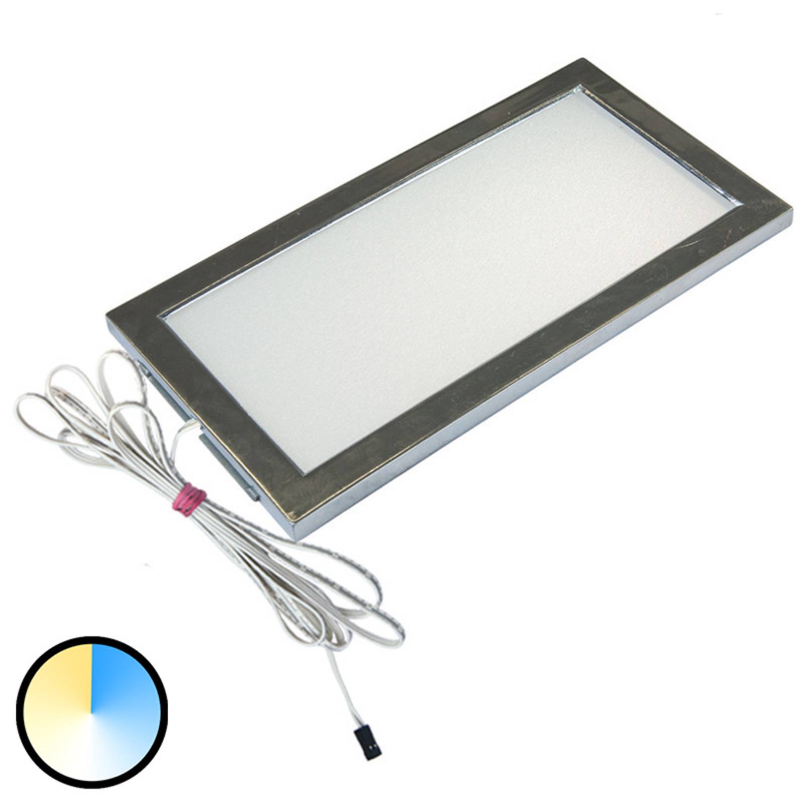 LED podsvietenie LED Sky s nastaviteľnou farbou svetla Ak namontujete podsvietenie LED Sky pod závesnú skrinku v kuchyni, osvetlí pracovnú plochu pod ňou. Pomocou diaľkového ovládania, ktoré je možné objednať ako príslušenstvo, je možné nastaviť farbu svetla zabudovaných LED diód medzi teplou bielou a univerzálnou bielou a stmievať ich, čím sa prispôsobia individuálnym potrebám používateľa. Vďaka jednoduchému dizajnu a nízkej montážnej výške je svietidlo nenápadné a zároveň flexibilné. Svietidlo má pripojovací kábel s dĺžkou 2,40 m a dynamickou zástrčkou. Na prevádzku LED Sky je potrebný LED-Tafo, na zmenu farby svetla a stmievanie diaľkové ovládanie (pozri príslušenstvo).
