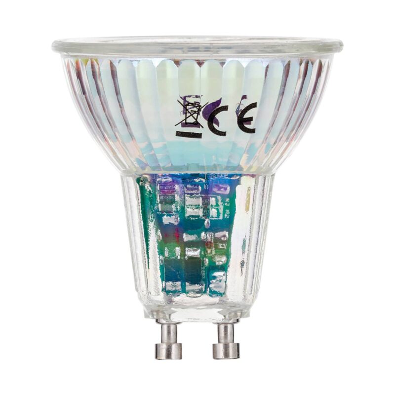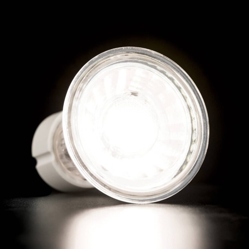 LED reflektor GU10 5W 38° z priehľadného skla, 3 000K – stmievateľný pomocou fázového stmievača a fázového stmievača alebo LED stmievača – veľmi dobré podanie farieb (Ra 95)