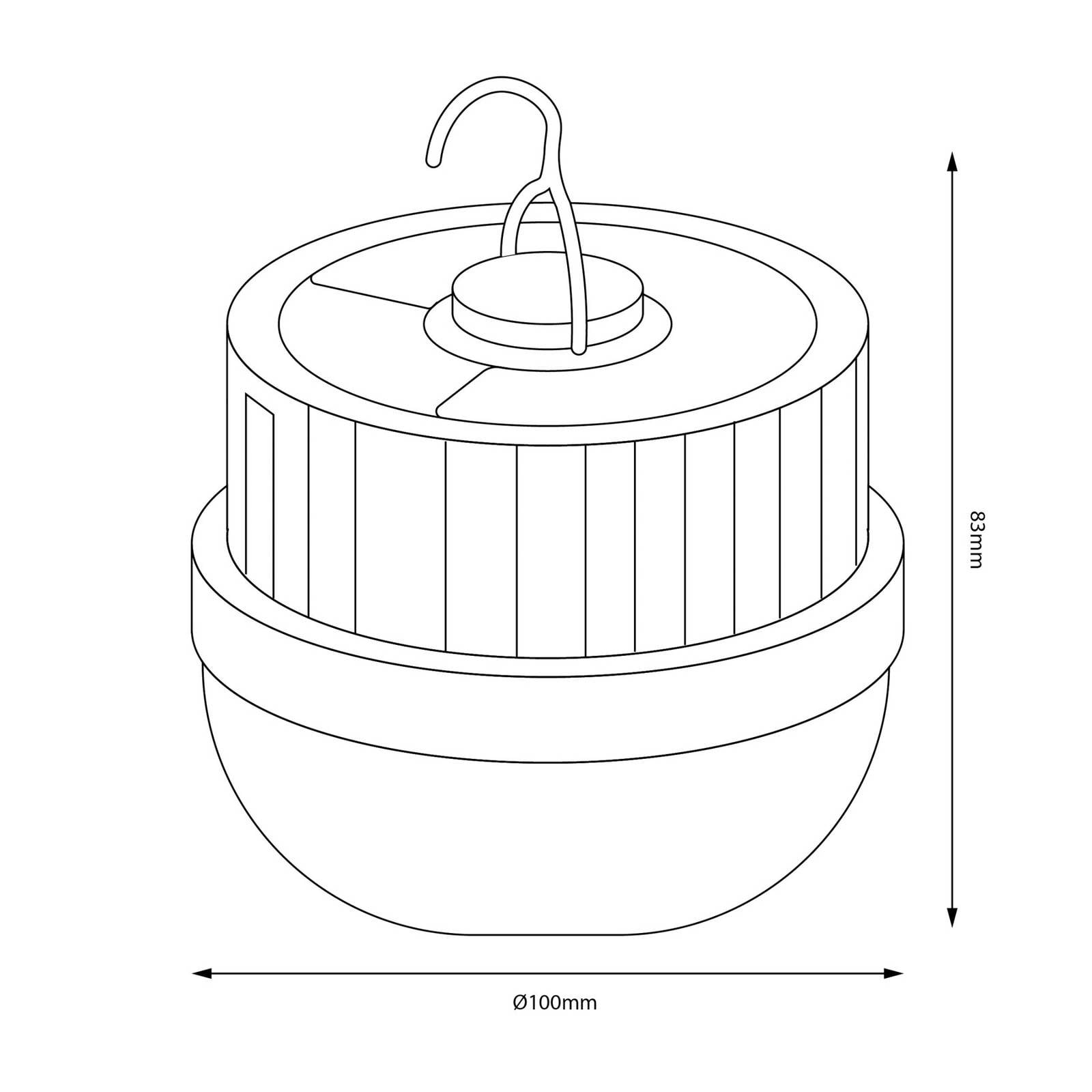 LED solárna lampa Ufo: prenosné osvetlenie s LED technológiou LED solárna lampa Ufo je vďaka háčiku na zavesenie vhodná do mnohých oblastí, najmä na kempovanie. Integrovaný LED svetelný zdroj vďaka solárnemu panelu poskytuje zadarmo svetlo, ktoré svieti v univerzálnej bielej farbe.
