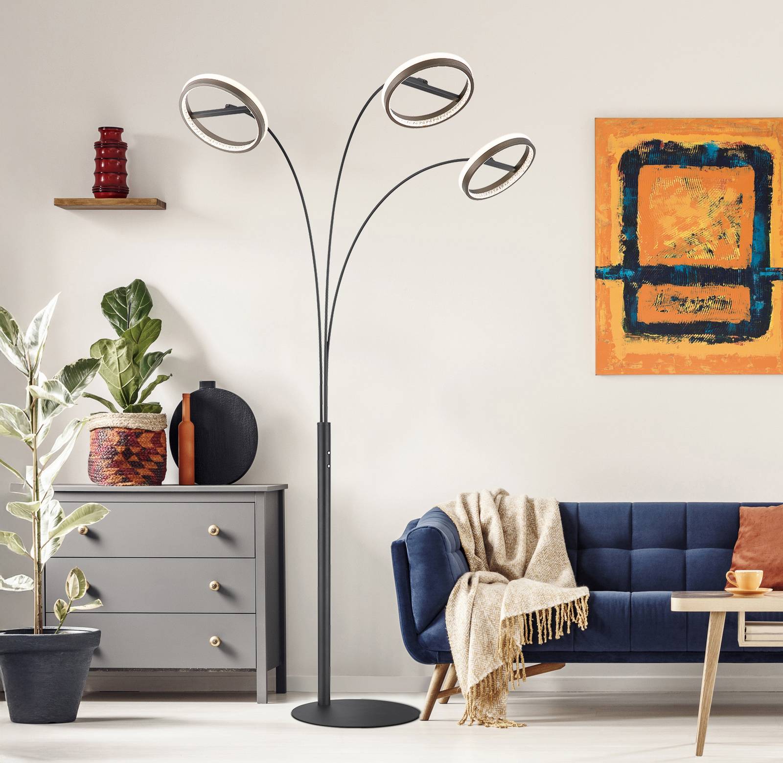 LED stojacia lampa Della, výška 190 cm, čierna/tmavosivá, 3-pl.