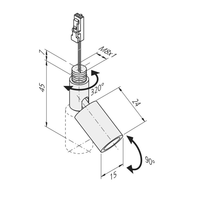 Manévrovateľné bodové svetlo LED Point S – smer svetla je možné flexibilne nastaviť Tento LED reflektor je možné ľahko nainštalovať kdekoľvek pomocou závitu M8x1 a zaujme flexibilnými možnosťami nastavenia. Vysoko kvalitný bodový reflektor LED Point S, vyrobený výhradne z kovu, je možné nielen otočiť o 320 °, ale aj natáčať o 90 °, aby bolo možné určité oblasti cielene osvetliť. LED Point S je vybavený 180 cm dlhým prepojovacím káblom so zástrčkou LED 350. Potrebný transformátor nie je súčasťou dodávky reflektora, je možné ho objednať zvlášť v rámci príslušenstva. – Uhol lúča: 10 ° (objektív 30 ° je súčasťou balenia)