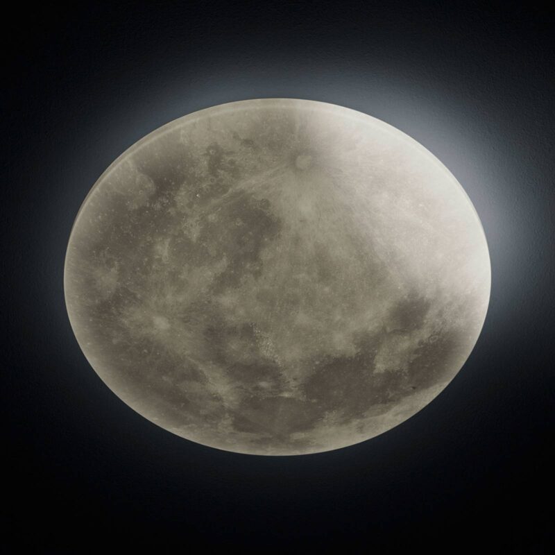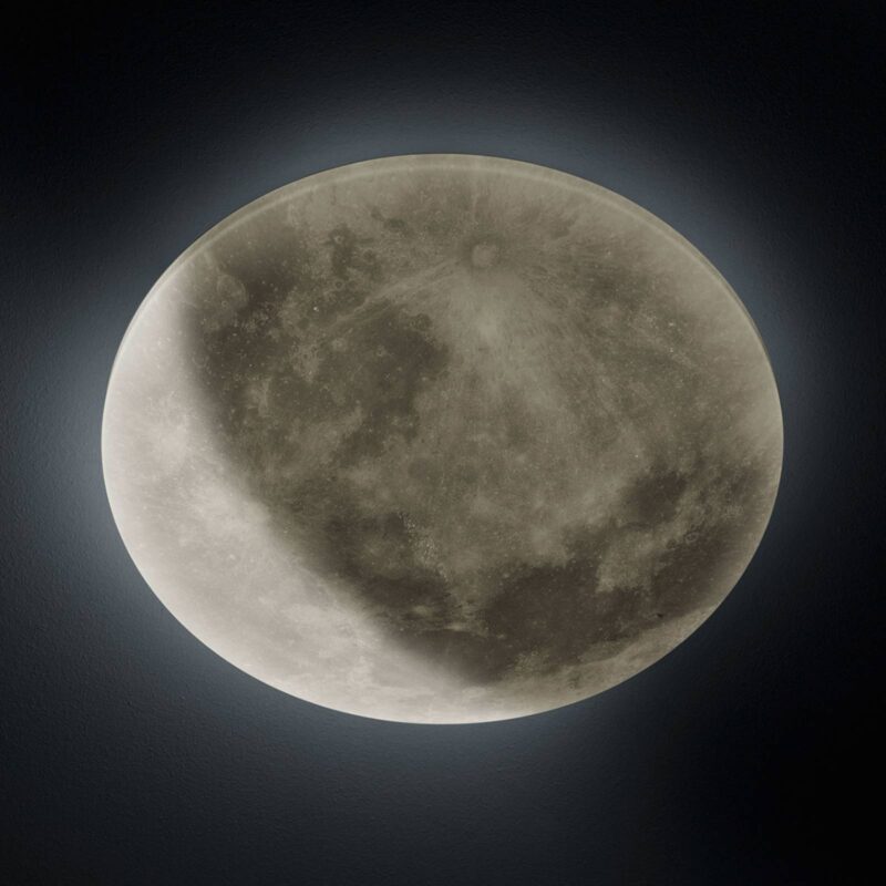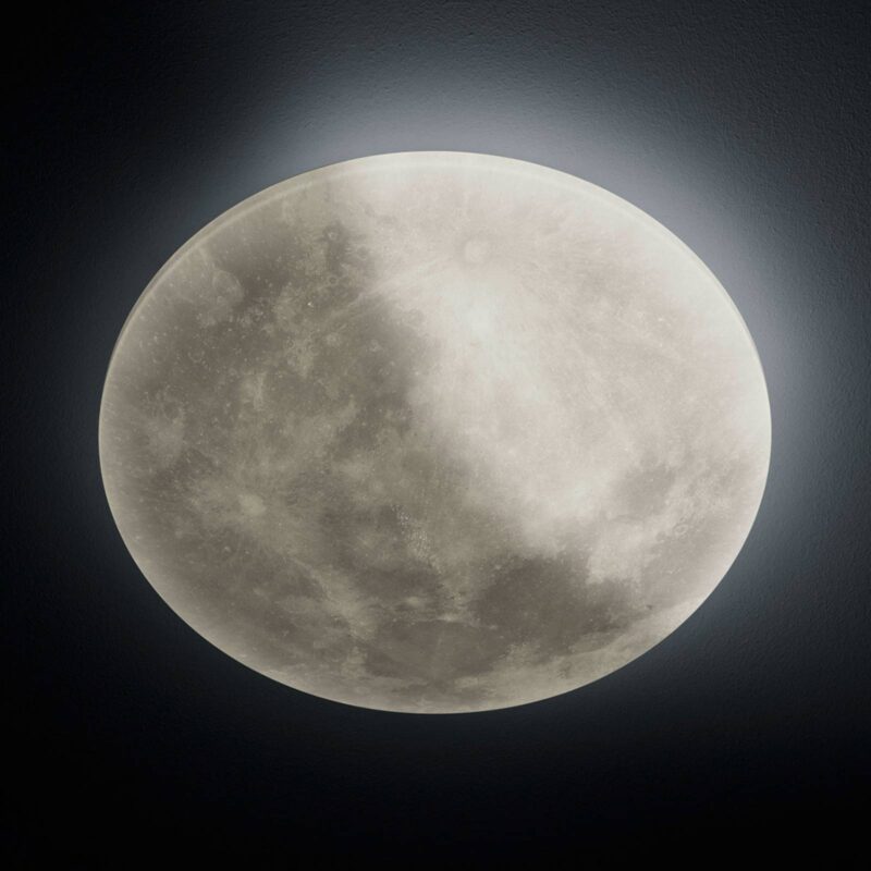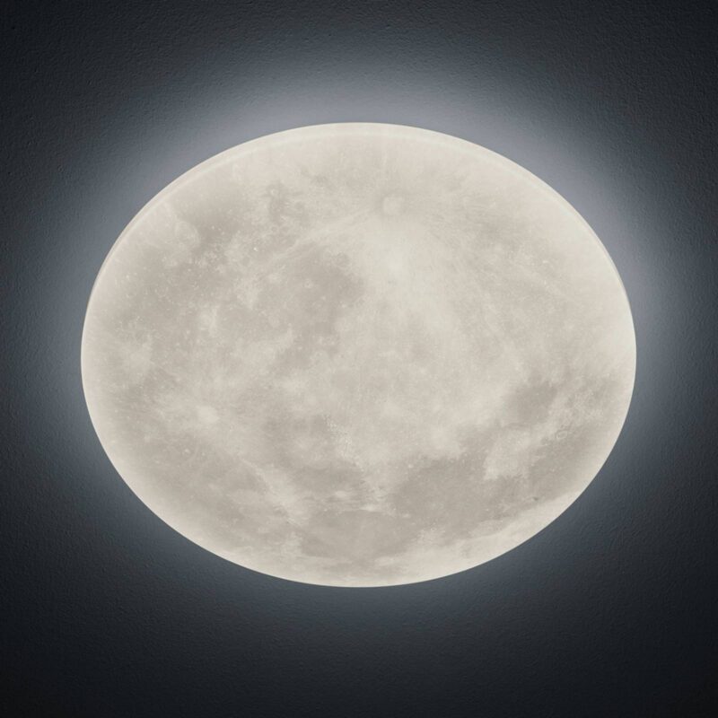 Stropná LED lampa Lunar – lampa inšpirovaná mesiacom Okrúhla ako mesiac v splne a povrch podobný povrchu mesiaca – to je stropná LED lampa Lunar. Táto lampa sa dodáva s infračerveným diaľkovým ovládačom, pomocou ktorého je možné pohodlne a flexibilne ovládať vyžarovanie svetla integrovanej, teplej bielej žiarovky LED. Tak si môžete pomocou diaľkového ovládača navoliť rôzne fázy mesiaca (vyžarovanie svetla zboku lampy na druhú stranu, cyklická transformácia – postupné rozsvietenie, postupné stmievanie svetla, jas svetla je možné regulovať, prepínanie na nočný režim alebo na 100 % jas). Keď sa stropná LED lampa Lunar zapne pomocou nástenného vypínača, vyžaruje svetlo so 100 % jasom. Pomocou diaľkového ovládača je možné ovládať aj viaceré lampy Lunar.