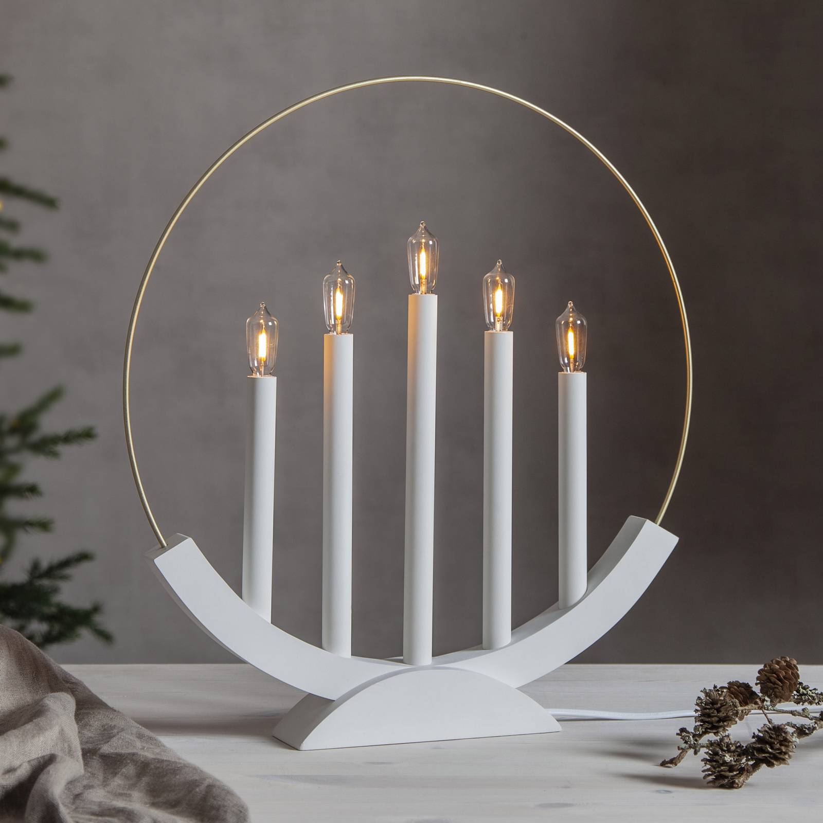 LED svietnik Brace, 5-plameňový, biela/zlatá