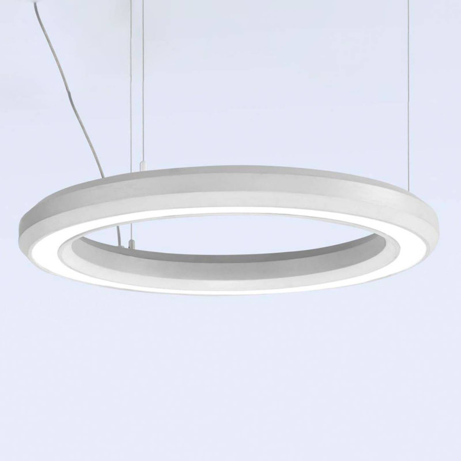LED dizajnové závesné svietidlo Materica ako downlight V tejto verzii dizajnérskeho závesného svietidla Materica sú LED diódy integrované na spodnej strane. Vďaka tomu poskytuje žiarovka priame osvetlenie, ktoré je vďaka jasným LED tiež intenzívne. Konštrukcia ako jasný kruhový tvar z betónu robí z Materice modernú dizajnérsku lampu, ktorá je obzvlášť efektívna vo veľkých, kvalitných obývacích izbách a salónikoch.