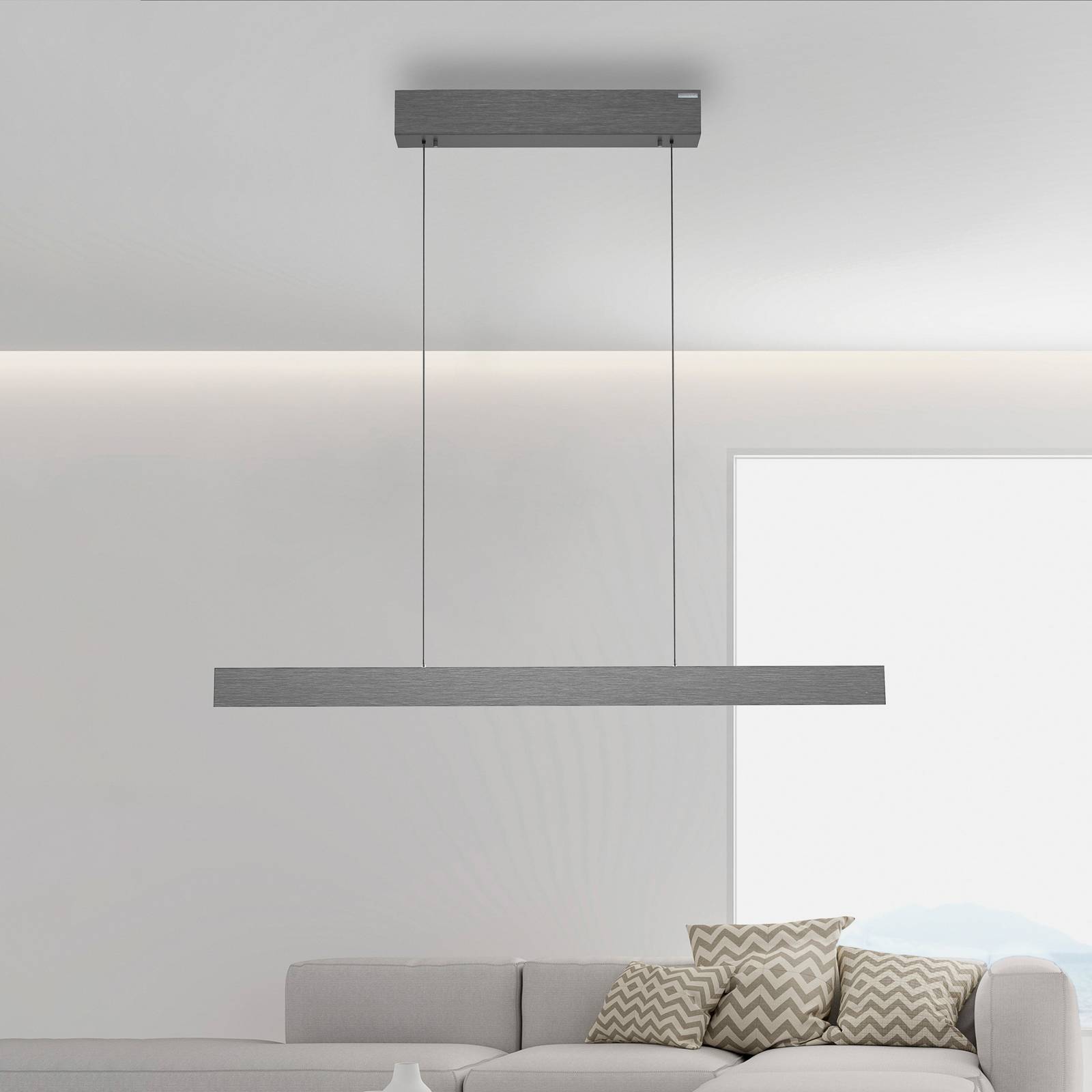Moderné LED závesné svietidlo s elektrickým nastavením výšky, CCT a diaľkové ovládanie LED závesné svietidlo PURE E-Motion od Paul Neuhaus je moderný a štýlový osvetľovací prvok do každej miestnosti. Svietidlo je vyrobené z vysoko kvalitného hliníka a je elektricky nastaviteľné, aby sa mohlo flexibilne prispôsobiť výške miestnosti. Integrované LED diódy zaisťujú príjemné a jasné osvetlenie, ktoré je nielen energeticky úsporné, ale aj trvácne. Jas aj farbu svetla je možné plynule nastavovať pomocou dodávaného diaľkového ovládania. Horné a dolné osvetlenie je možné zapínať samostatne pomocou dotykovej plochy.