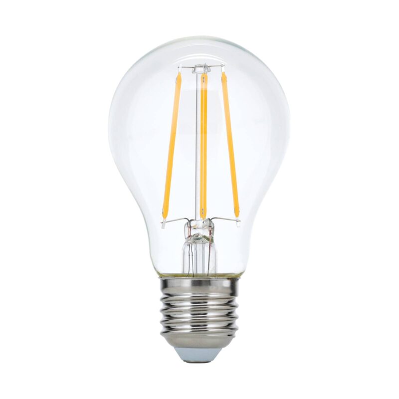 Číra LED žiarovka E27 4,5 W vlákno 2 700 K, tvar žiarovky, stmievateľná – stmievateľná pomocou fázového stmievača alebo LED stmievača