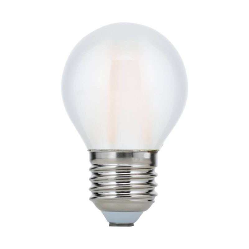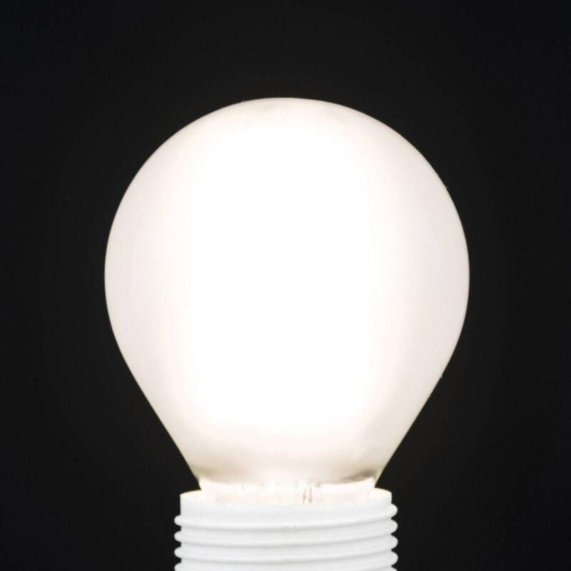 Interiérová matná LED žiarovka E27 4,5 W v tvare malého miniglobu, stmievateľná – stmievateľná fázovým stmievačom