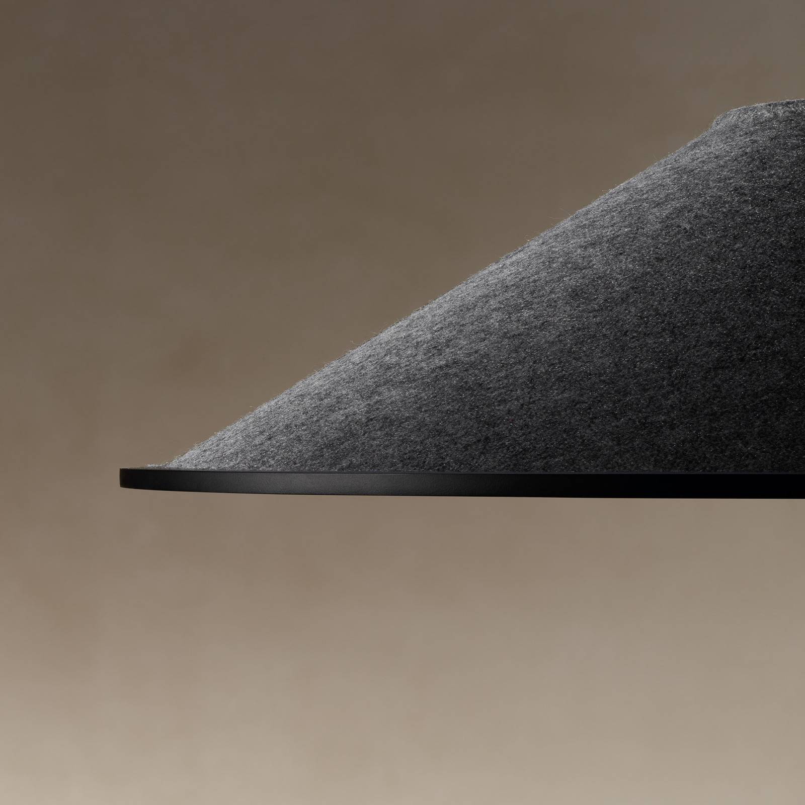 Podlhovasté závesné svietidlo LED Shoemaker s plsteným tienidlom tlmiacim hluk Shoemaker pozostáva z čierneho rámu a sivého podlhovastého plsteného tienidla. Plsť je nielen odolná a izolačná, ale aj nehorľavá a pohlcuje zvuk. Jej protihlukový charakter je dnes dôležitejší ako kedykoľvek predtým. V kancelárii, reštaurácii alebo rokovacej miestnosti chcú ľudia tlmiť hluk, aby podporili koncentráciu a vytvorili príjemnejšiu atmosféru. Závesné svietidlo Shoemaker má vďaka svojmu textilnému tienidlu túto vlastnosť pohlcovania zvuku, a preto je obľúbenou voľbou. Trvalo nainštalované LED diódy možno individuálne nastaviť z hľadiska farby a intenzity svetla vďaka pripojeniu DALI. Shoemaker je preto vhodný ako multifunkčné svietidlo do mnohých priestorov, či už na prácu nad stolmi v rokovacej miestnosti alebo na útulné osvetlenie v reštaurácii – plynulo nastaviteľné farby svetla (2 700 K – 6 500 K) – navrhol Joel Karlsson – vrátane elektronického predradníka TRICONIC – riadiaca jednotka DALI DT8