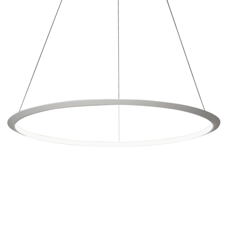 Svetelné závesné svietidlo LED Kruhové ako monumentálny prsteň Toto moderné závesné svietidlo je v každom ohľade pútavým zdrojom svetla, ktorý veľkoryso osvetľuje aj priestranné interiérové priestory, ako sú recepčné haly alebo sály na podujatia. Circular je navrhnutý ako obrovský prsteň, ktorý držia tri štíhle drôty a takmer sa zdá, že sa vznáša v priestore. Na celej vnútornej strane konštrukcie z hliníka je zabudovaný polykabonátový difúzor, ktorý rovnomerne rozptyľuje univerzálne biele svetlo integrovaných LED diód. – S elektronickým predradníkom; externe stmievateľné pomocou DALI