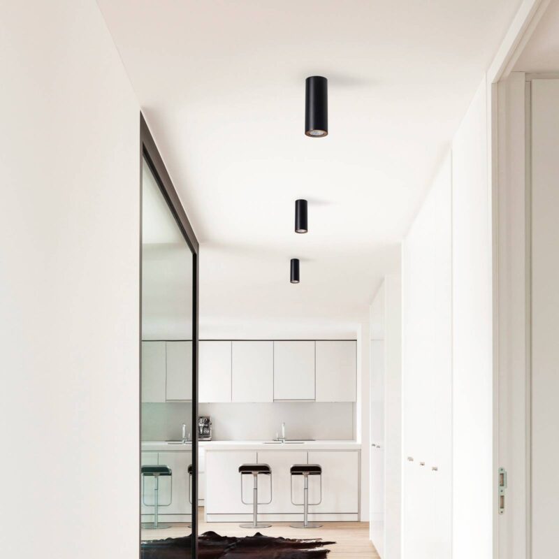 Čierny stropne bodove svetla reflektor Potrubie so zlatými akcentmi – jednohlavé Malý trubicový stropne bodove svetla Pipe zaujme minimalistickým a všestranným dizajnom a so zvláštnym detailom takmer úplne čierneho laku: Spodný okraj je lakovaný zlatom, čo dodáva použitému svetlu teplý, útulný nádych. Svetelný zdroj nie je súčasťou dodávky, je možné ho získať osobitne z príslušenstva. – určené na inštaláciu a montáž