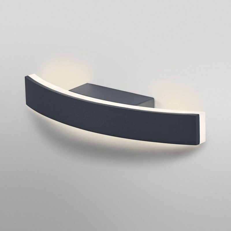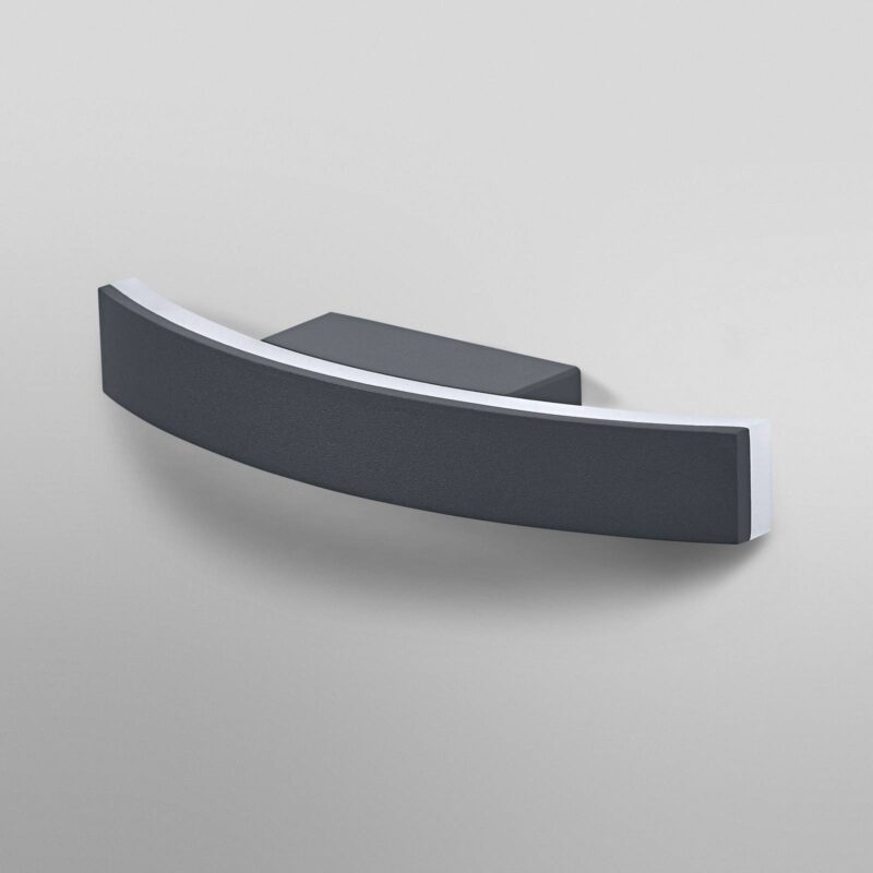 Sofistikované vonkajšie nástenné svietidlo LED Endura Style Bow s tvarom svetelného oblúka Vonkajšie nástenné svietidlo LED Endura Style Bow je ideálne na osvetlenie fasád, vstupných priestorov alebo balkónov a terás. Tmavosivé hliníkové puzdro s ľahkým oblúkovým tvarom pôsobí veľmi sofistikovane a elegantne. Endura Style Bow je vybavená teplými bielymi LED diódami a je vhodným zdrojom svetla pre vonkajšie priestory, najmä pre budovy v modernom štýle. Vonkajšia strana svietidla LED je tiež veľmi robustne spracovaná, takže údery päsťou ani údery kladivom s hmotnosťou až 500 gramov nemôžu svietidlo poškodiť. Okrem toho vonkajšie nástenné svietidlo bez problémov odoláva teplotám okolia od -20 do 40 °C. – Kompletné montážne a pripojovacie príslušenstvo je súčasťou dodávky – Uhol lúča 355 – Trieda ochrany IP44 – Trieda odolnosti proti nárazu IK07