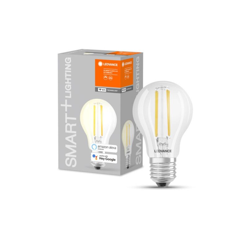 Ovládanie cez W-LAN – teplá biela LEDVANCE SMART E27 LED žiarovka s 5,5 W vo vlákne vzhľad Túto číru LED žiarovku v klasickom tvare žiarovky A60 možno inteligentne spínať a stmievať bez akéhokoľvek mostíka alebo brány. Vďaka technológii SMART WiFi prebieha komunikácia prostredníctvom existujúceho smerovača (nie je súčasťou dodávky). Svietidlo možno teraz ovládať prostredníctvom aplikácie pre smartfón a tablet alebo hlasovým príkazom. Funkcie/kompatibilita: – ovládanie pomocou aplikácie LEDVANCE SMART WiFi (dostupná bezplatne pre iOS a Android); umožňuje predvoľby a automatizácie – ovládanie prostredníctvom Google Assistant alebo Amazon Alexa – stmievanie – rádiový protokol: WiFi 2,412 – 2,484 GHz Nové výrobky LEDVANCE, predtým známe pod značkou OSRAM, spájajú najvyššie štandardy kvality s moderným dizajnom.