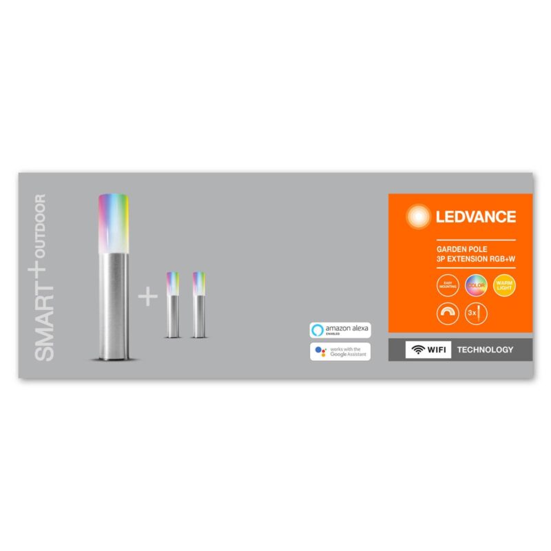 LEDVANCE SMART+ WiFi LED pozemné bodcové svietidlo Garden Pole v sade 3 pre rozšírenie Tieto tri pozemné bodové svetlá Garden Pole LED vrátane kabeláže sú určené na doplnenie skupiny ôsmich svetiel k základnej sade 5 (pozri príslušenstvo). Nezávislá prevádzka nie je možná, pretože pripojenie 230 V a riadiaca skrinka s LEDVANCE SMART+ WiFi sú k dispozícii iba v základnej zostave. Nové výrobky LEDVANCE, známe skôr pod značkou OSRAM, kombinujú najvyššie štandardy kvality s moderným dizajnom.