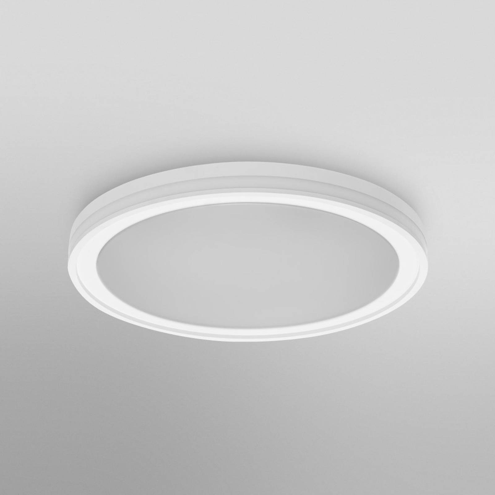 Stropné svietidlo Orbis Circle LED s bočným svetlom a technológiou LEDVANCE SMART+ WiFi Stropné svietidlo Orbis Circle LED vyzerá, akoby pozostávalo z troch kruhov ležiacich na sebe. Má dva zdroje svetla, ktoré svietia priamo nadol a do strán miestnosti. Oba zdroje svetla možno ovládať nezávisle. Vďaka okrúhlemu tvaru a nenápadnému farebnému prevedeniu ho možno bez problémov integrovať do rôznych miestností. Jas, farbu svetla a teplotu farieb možno nastaviť pomocou aplikácie alebo hlasového príkazu. Stropné svietidlo je integrované s technológiou LEDVANCE SMART+ WiFi prostredníctvom siete WLAN. Technické údaje / kompatibilita: – Ovládanie prostredníctvom aplikácie LEDVANCE SMART+ WiFi (s operačným systémom Android minimálne 4.4 alebo iOS 9.0) zdarma; umožňuje prednastavenia a automatizácie. – Možnosť hlasového ovládania cez Google Assistant alebo Amazon Alexa – RGB a nastaviteľná teplota farieb: 3 000 K – 6 500 K – stmievateľné – Sieťový protokol: WiFi