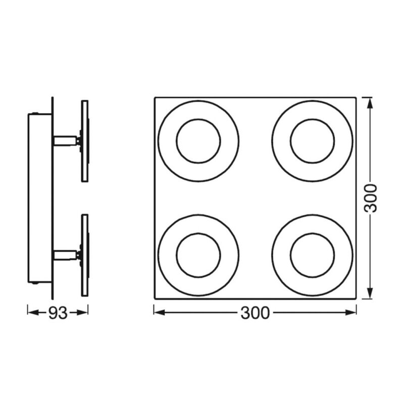 Stropné svietidlo LED Orbis Wall Wave so štyrmi žiarovkami a technológiou LEDVANCE SMART+ WiFi Štvorcové stropné svietidlo Orbis Wall Wave LED má krytie IP44, a preto je určené na použitie v kúpeľni. Tam sa dá namontovať na strop a vyžarovať svetlo smerom k podlahe. Kĺby a ploché tienidlá svietidla možno individuálne nastaviť tak, aby bola miestnosť optimálne osvetlená. Orbis Wall Wave je vyrobený z ocele a je navrhnutý v striebornej a bielej farbe, vďaka čomu sa dá ľahko integrovať do mnohých interiérov. Teplotu farieb a jas možno ovládať pomocou aplikácie alebo hlasového príkazu. Integrácia sa vykonáva pomocou technológie LEDVANCE SMART+ WiFi prostredníctvom siete WLAN. Technické údaje / kompatibilita: – Ovládanie prostredníctvom aplikácie LEDVANCE SMART+ WiFi (s operačným systémom Android minimálne 4.4 alebo iOS 9.0) zdarma; umožňuje prednastavenia a automatizácie. – Možnosť hlasového ovládania cez Google Assistant alebo Amazon Alexa (vyžaduje príslušný systém inteligentnej domácnosti) – Nastaviteľná teplota farby: 3 000 K – 6 500 K – stmievateľné – Trieda ochrany IP44 – Sieťový protokol: WiFi 2,4 GHz