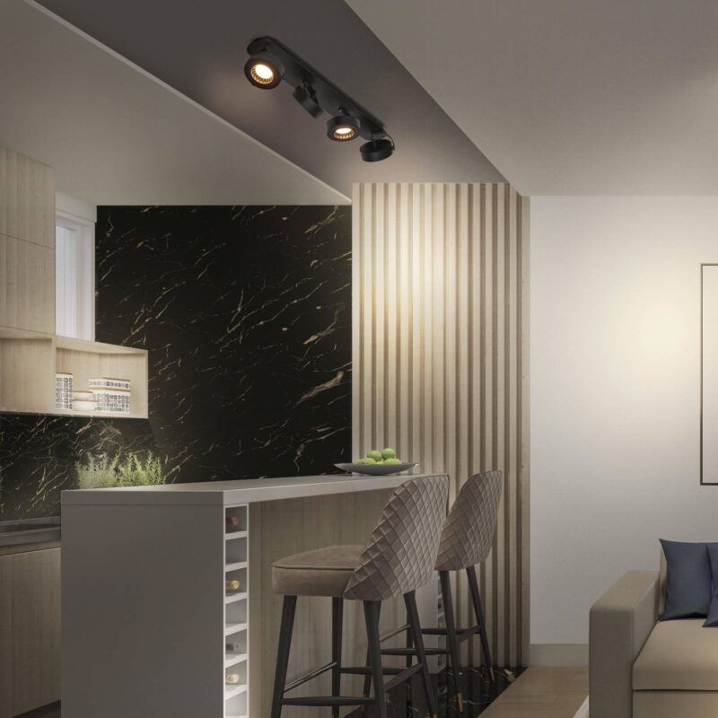 Trojlampový stropný LED reflektor Venus Trojlampový stropný LED reflektor Venus vyrobený z ocele s matným povrchom poskytuje teplé biele osvetlenie, ktoré vyžaruje z nastaviteľných bodov pod širokým uhlom a možno ho nasmerovať do rôznych častí miestnosti. Reflektor s kvalitným krytom s matným povrchom sa ľahko inštaluje a je vhodný na takmer všetky interiérové aplikácie, či už v obývacej izbe, kuchyni, chodbe alebo spálni. Dodáva sa s kompletným montážnym a pripojovacím príslušenstvom.