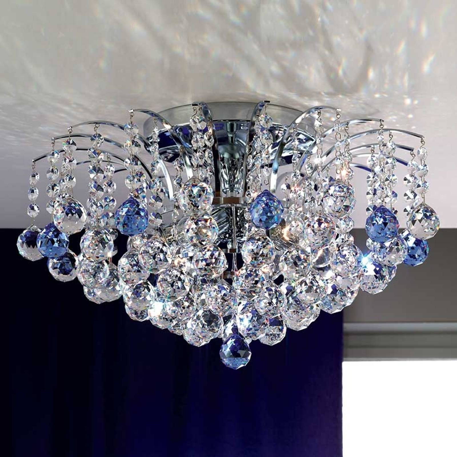 LENNARDA krištáľové stropné svietidlo modré/chróm