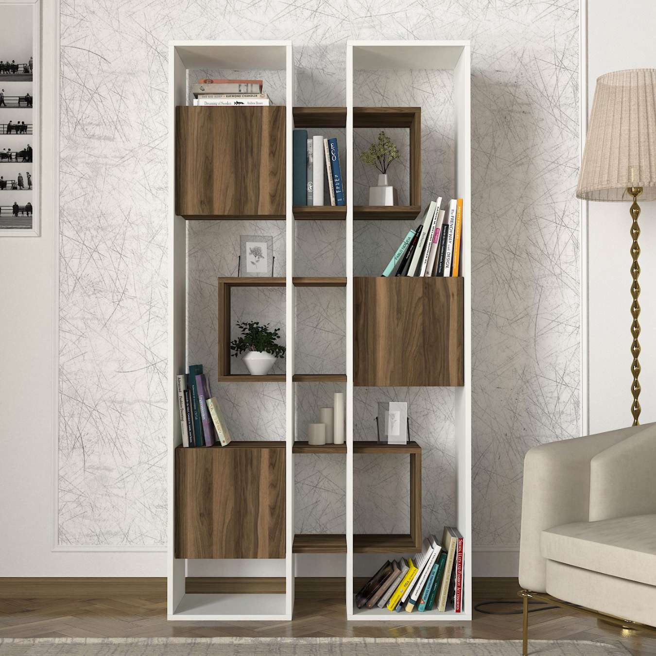 LEONA – Štýlový policový regál pre obývaciu izbu a kanceláriuPredstavujeme vám LEONA – elegantný a praktický policový regál, ktorý je ideálnym doplnkom pre vašu obývaciu izbu i kanceláriu. Tento regál je vyrobený z kvalitného LTD materiálu a ponúka moderný dizajn v kombinácii bielej a orechovej farby.Typ tovaru: Policový regálMateriál: LTDRozmer: 95.9 x 183.6 x 29.6 cmFarba: Biela + orechVybavenie: 6 políc a 3 skrinkyPočet políc: 6Hrúbka materiálu: 18 mmDodatočné informácie: Dodávame v demonteRegál LEONA vyniká svojim moderným a praktickým dizajnom, ktorý sa skvele hodí do akéhokoľvek interiéru. Šesť pevných políc a tri skrinky poskytujú dostatok úložného priestoru na knihy, dekorácie či kancelárske potreby. Kombinácia bielej a orechovej farby dodáva regálu elegantný vzhľad. Robustný LTD materiál s hrúbkou 18 mm zaisťuje dlhú životnosť a stabilitu tohto regálu.Objednajte si policový regál LEONA ešte dnes a pridajte do svojej obývačky či kancelárie štýlový a funkčný nábytok. Dodávame v demonte, čo umožňuje jednoduchú prepravu a jednoduchú montáž.