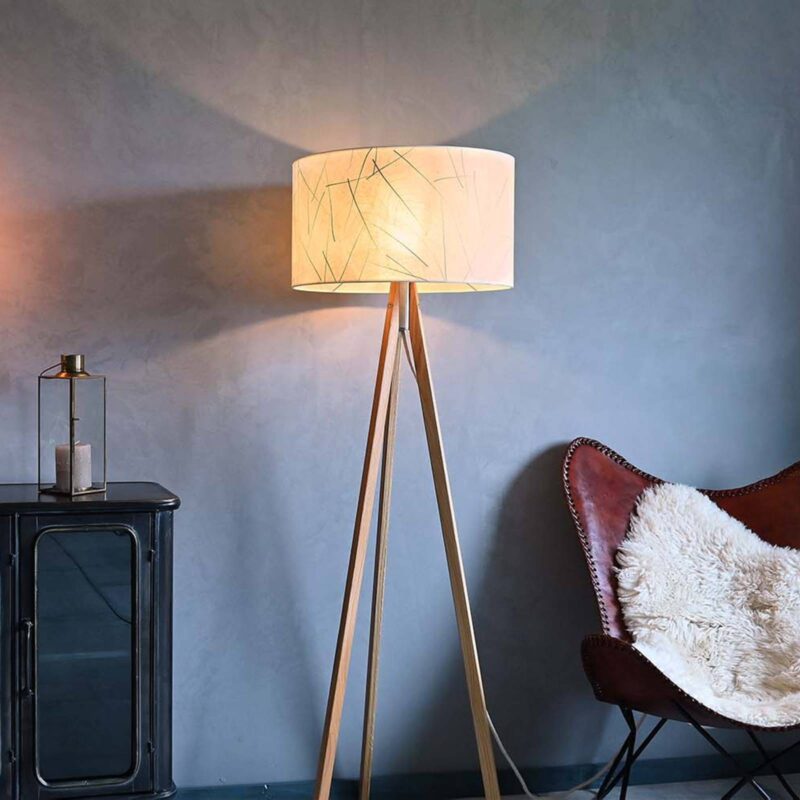 Stojacia lampa Ligno s rámom na trojnožke a tienidlom z listov kaučukovníka Stojacia lampa Ligno sa skladá z rámu z dreva a tienidla z bielo farbených listov kaučukovníka. Tienidlo vyžaruje svetlo bez oslnenia smerom nahor a nadol a cez žilky listov získava individuálne zrno. Vďaka kombinácii materiálov a farieb sa stojacia lampa ľahko začlení do rôznych obytných prostredí. S vhodným zdrojom svetla je možné svietidlo stlmiť. Výrobca odporúča používať svetelný zdroj LED. Bavorská spoločnosť LeuchtNatur by chcela svojimi tvarovanými drevenými lampami vniesť viac harmónie a útulnosti do každodenného života, ktorému dominujú rýchle technológie. Výrobca svietidiel kladie veľký dôraz na prírodné materiály, ako aj na ekologickú a udržateľnú výrobu.